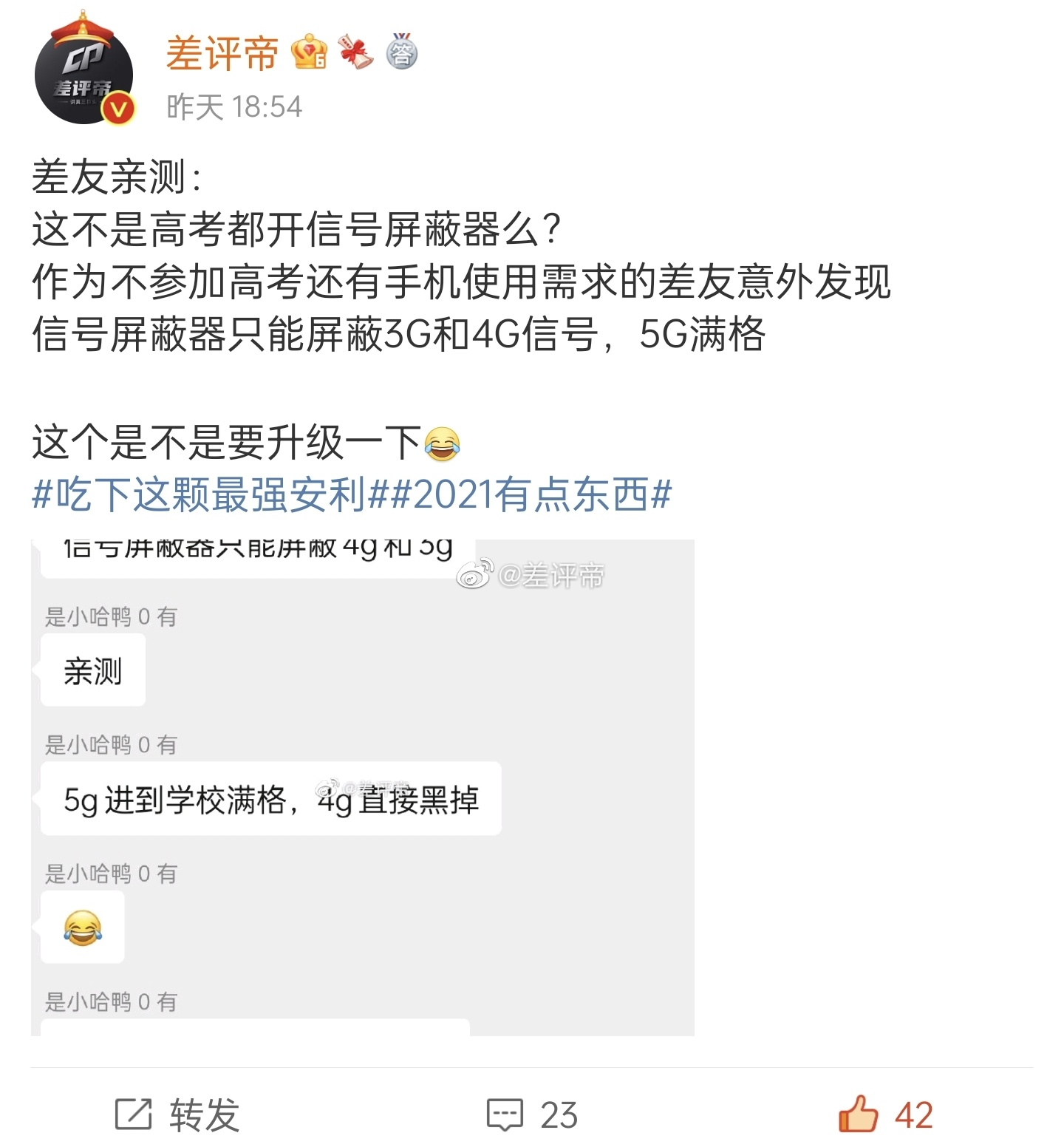 值得一提的是,有網(wǎng)友意外發(fā)現(xiàn)高考考場信號屏蔽器只能屏蔽3G和4G信號,5G信號滿格。