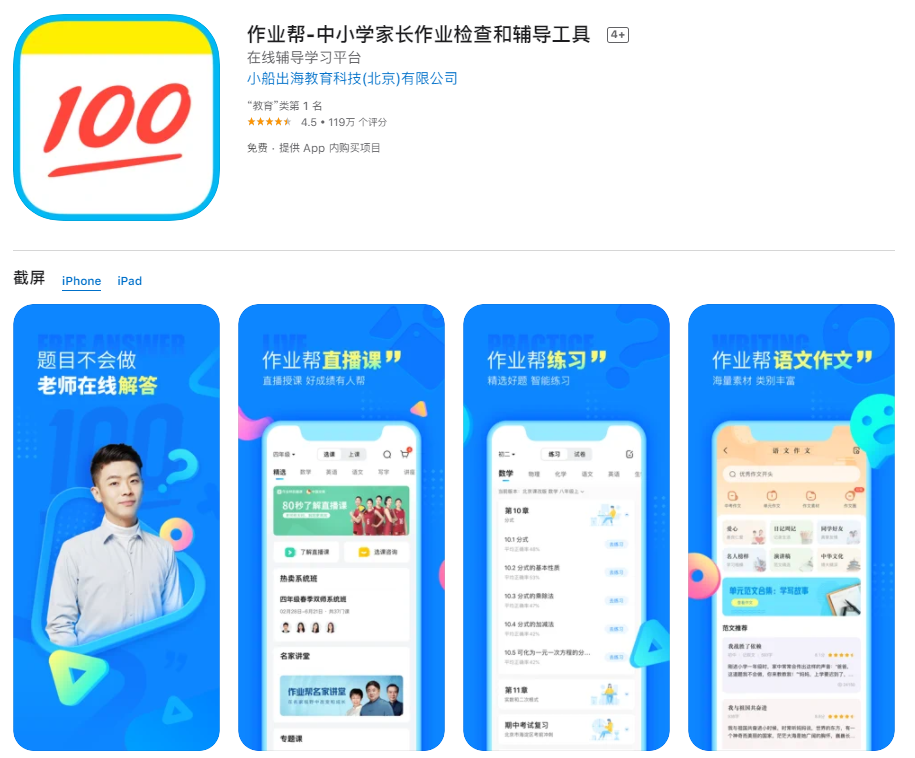 ▲AppStore 中的作業(yè)幫