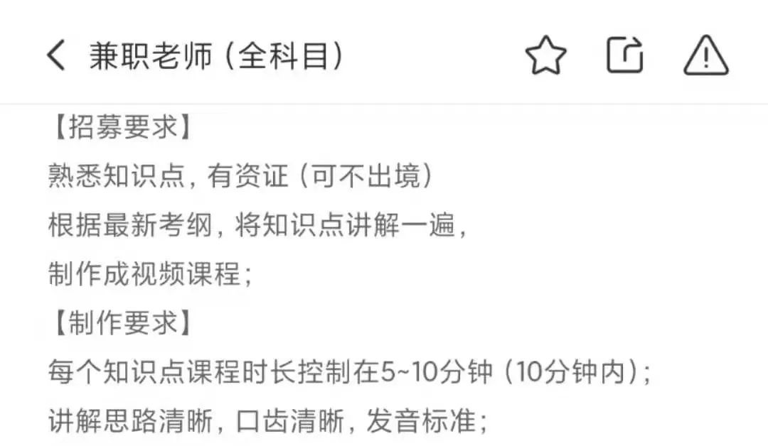 “一般情況下,兼職的在校教師都不會露臉參加直播課堂、課程視頻的錄制。”她指出,由于兼職的在校教師均擁有教師資格證書,且有在職的教學(xué)及教研經(jīng)驗(yàn),因此一直是機(jī)構(gòu)在課程、教材開發(fā)方面的中堅力量。