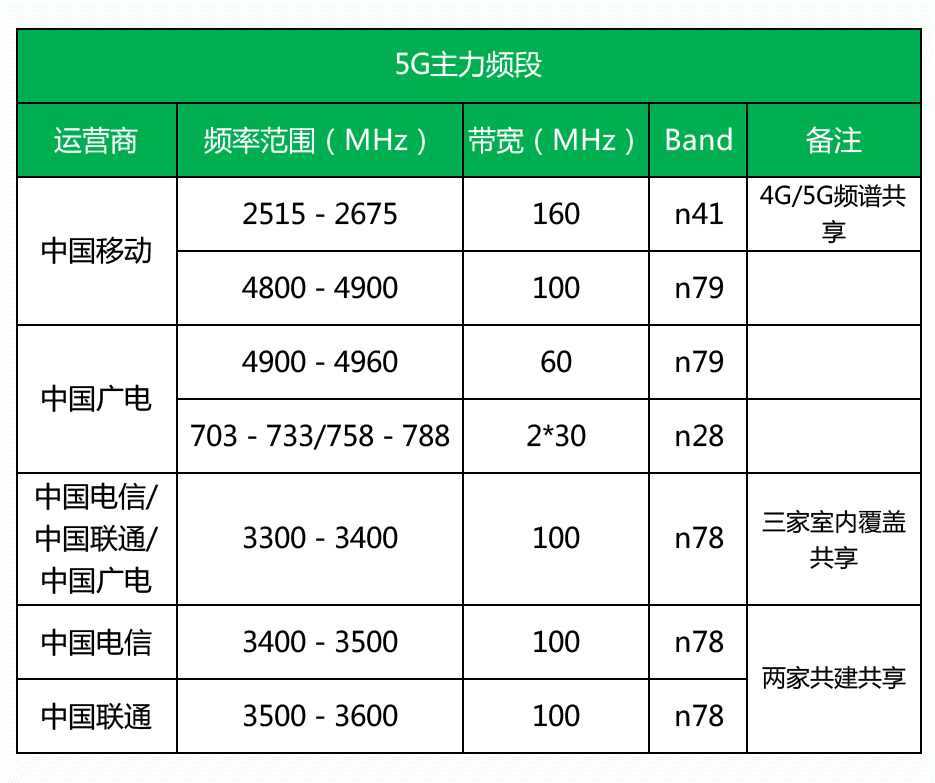 三大運營商的2G/3G/4G/5G網(wǎng)絡頻段,都是國家規(guī)定好的。手機和基站,都只能使用指定的頻段,進行通信。