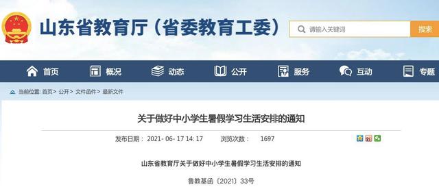 山東省教育廳:山東要求學(xué)校暑假不得補課