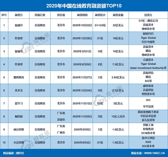 就在周楓喊出這句口號之前,資本對于在線教育的投入已經(jīng)堪稱“瘋狂”。2020年3月和8月,猿輔導(dǎo)分別宣布獲得10億美元和12億美元的融資;2020年6月,作業(yè)幫宣布獲得7.5億美元E輪融資;2020年4月和8月,火花思維分別宣布獲得3000萬美元和1.5億美元融資;2020年9月,豌豆思維宣布獲得2億美元C輪融資。