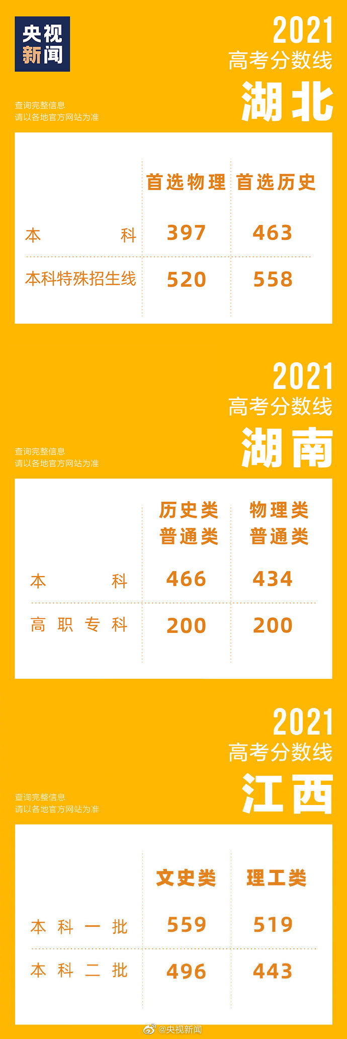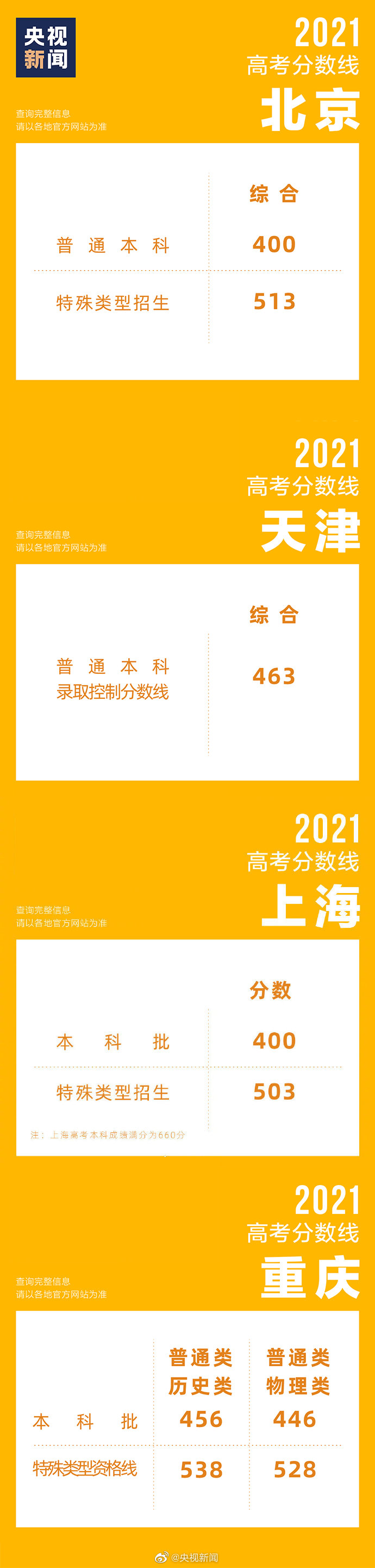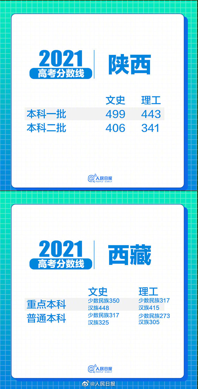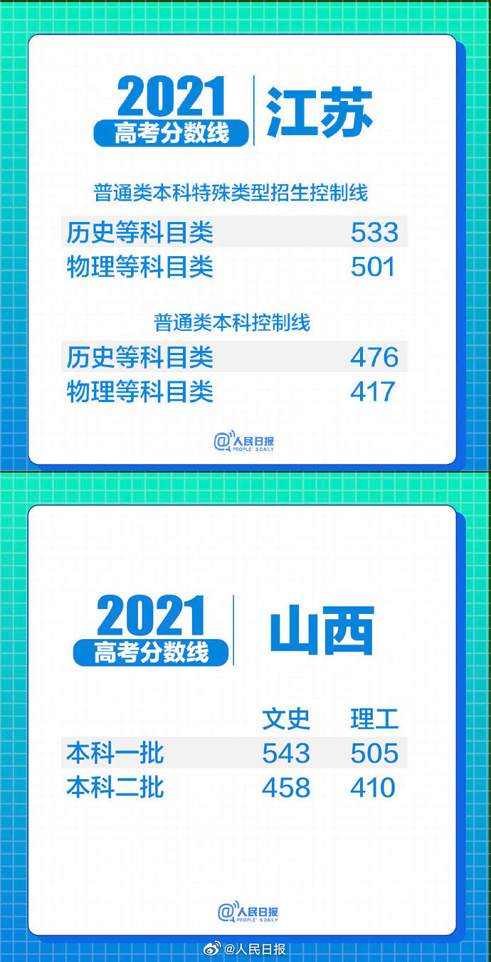 2021-06-26 17:23:14閱讀()人民日報31省區(qū)市2021高考分數(shù)線匯總,截至目前,31個省區(qū)市已陸續(xù)公布了2021年高考各批次錄取分數(shù)線↓↓祝大家都能進入自己理想的大學! ????