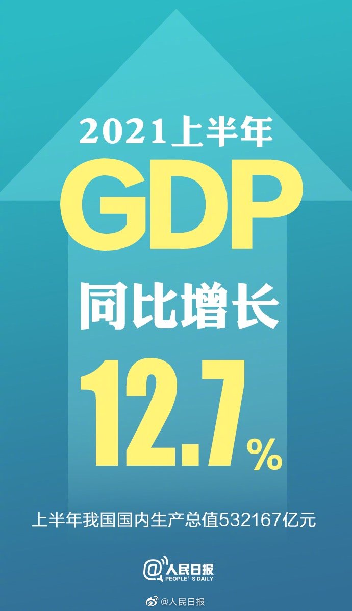 國家統(tǒng)計(jì)局:中國上半年GDP為53.2萬億 同比增長12.7%