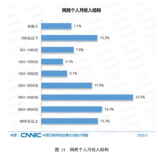 全國(guó)6.5億網(wǎng)民月收入不足5000元