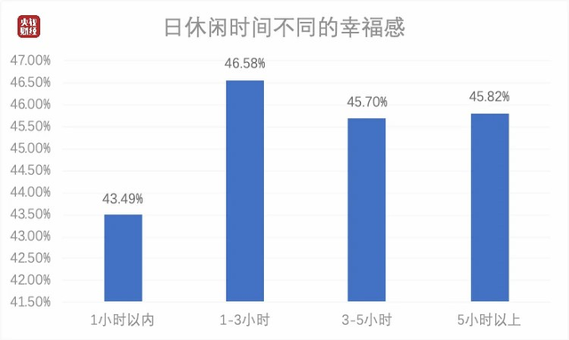 整體趨勢(shì)上看,并不是休閑時(shí)間越長(zhǎng),人們的幸福感就越強(qiáng)。休閑時(shí)間1-3小時(shí)的人群,幸福感是最高的。