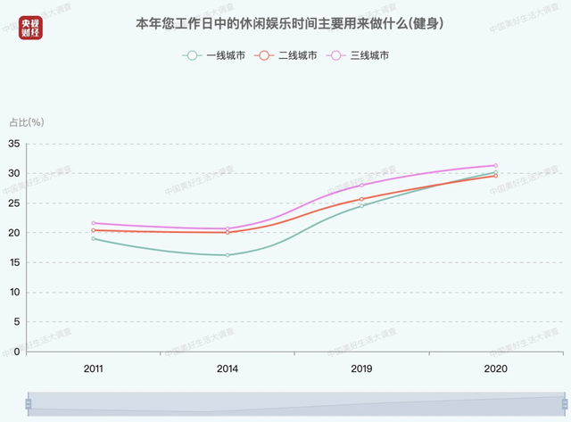 從不同城市類(lèi)型來(lái)看,近十年來(lái),三線城市對(duì)運(yùn)動(dòng)健身的熱衷程度,已經(jīng)超過(guò)一、二線城市。