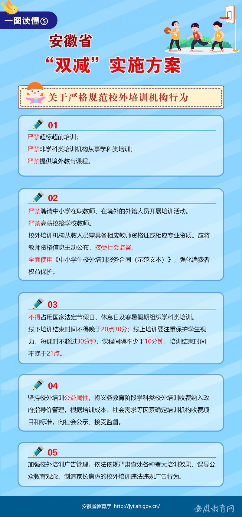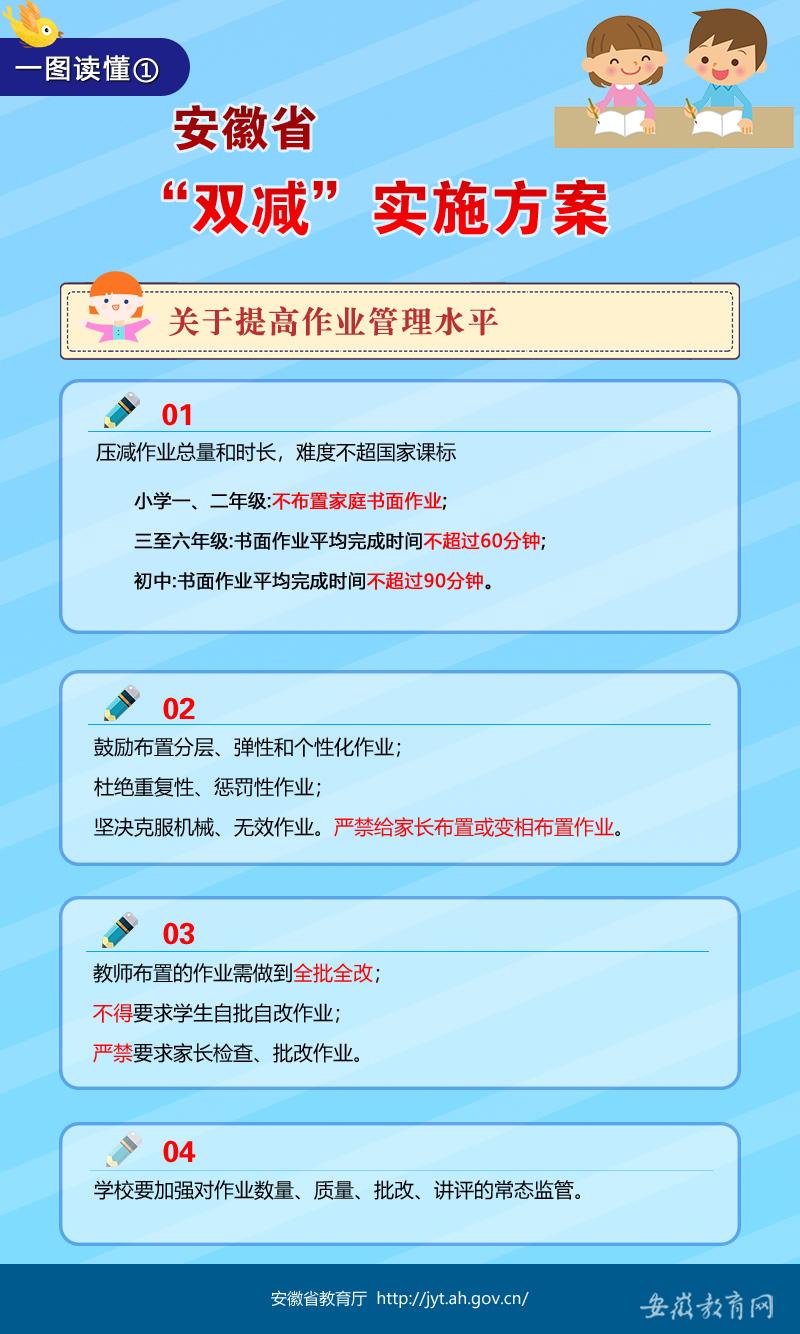 一圖讀懂《安徽省進(jìn)一步減輕義務(wù)教育階段學(xué)生作業(yè)負(fù)擔(dān)和校外培訓(xùn)負(fù)擔(dān)的實(shí)施方案》