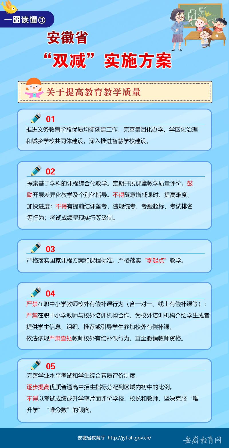 您的位置:首頁(yè) / 行業(yè)資訊 / 一圖讀懂《安徽省進(jìn)一步減輕義務(wù)教育階段學(xué)生作業(yè)負(fù)擔(dān)和校外培訓(xùn)負(fù)擔(dān)的實(shí)施方案》