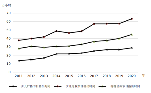 圖8 2011—2020年少兒廣播節(jié)目、少兒電視節(jié)目、電視動畫節(jié)目播出時間