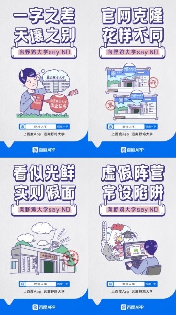 當(dāng)用戶搜索到野雞大學(xué)時,百度也會在搜索結(jié)果中進(jìn)行強(qiáng)提示:“這是虛假大學(xué)”。