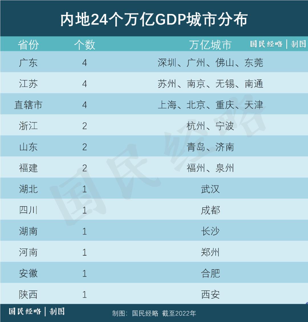 早在改革開放之初的1978年,廣東經(jīng)濟(jì)總量落后于上海、江蘇、山東、遼寧等省份。1979年到1988年,江蘇、山東曾輪流位居全國首位,直到被廣東所取代,且領(lǐng)先優(yōu)勢(shì)不斷增強(qiáng)。30多年來,廣東GDP總量從1989年的1400億增長(zhǎng)到12萬億,無論是增長(zhǎng)速度還是發(fā)展質(zhì)量,均是首屈一指。這些年,廣東經(jīng)受了非典、全球金融危機(jī)、新冠疫情等沖擊,但借助強(qiáng)大的經(jīng)濟(jì)韌性,始終保持著高增長(zhǎng)態(tài)勢(shì),穩(wěn)居全國經(jīng)濟(jì)第一大省之位。國民經(jīng)略主筆 凱風(fēng) 新著,清華大學(xué)出版社出品,點(diǎn)擊圖片查看02廣東,是全國萬億GDP城市最多的省份之一。截至2022年,全國共有24個(gè)萬億GDP城市,其中南方18個(gè),北方6個(gè)。廣東與江蘇,各有4個(gè)城市入圍,領(lǐng)跑各大省份。