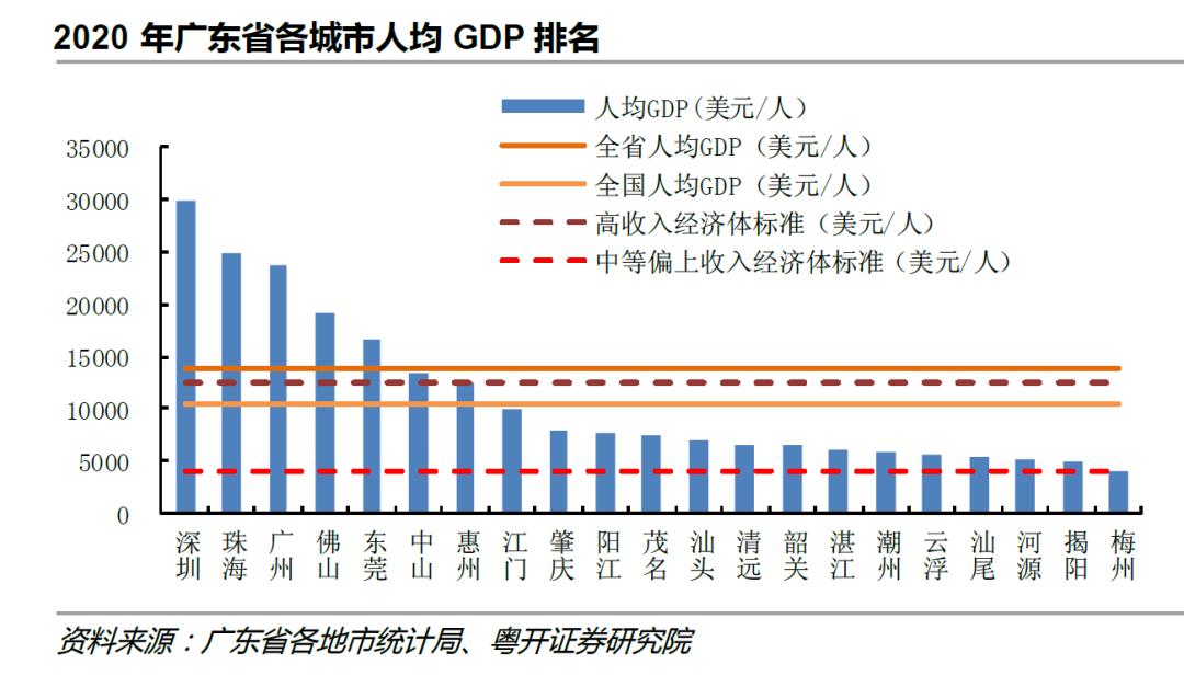不過,隨著國際疫情形勢(shì)變化,外貿(mào)將會(huì)受到一定挑戰(zhàn),高增長(zhǎng)態(tài)勢(shì)難以持續(xù),主要外貿(mào)城市發(fā)展或會(huì)受到影響。2020年以來,雖然全球疫情形勢(shì)日益嚴(yán)峻,但由于我國迅速遏制疫情擴(kuò)散,供應(yīng)鏈體系得以迅速恢復(fù),借助強(qiáng)大的工業(yè)體系,我國外貿(mào)進(jìn)出口在疫情期間逆勢(shì)擴(kuò)張,對(duì)于穩(wěn)經(jīng)濟(jì)發(fā)揮了關(guān)鍵作用。不過,正如官方有關(guān)人士所分析的:“當(dāng)前全球疫情起伏反復(fù),外部環(huán)境更趨復(fù)雜嚴(yán)峻和不確定,我國經(jīng)濟(jì)率先恢復(fù)的相對(duì)優(yōu)勢(shì)和基數(shù)效應(yīng)可能減弱,2022年我國外貿(mào)發(fā)展面臨的不確定不穩(wěn)定不均衡因素增多”。所以,如何穩(wěn)外貿(mào),是擺在所有外貿(mào)大省面前的一道考題。07廣東并非沒有短板。據(jù)《》一書分析,廣東雖然經(jīng)濟(jì)發(fā)展強(qiáng)勁,但區(qū)域發(fā)展并不均衡:既有富裕程度遙遙領(lǐng)先的珠三角,也有相對(duì)不發(fā)達(dá)的粵東西北。廣東下轄21個(gè)地市,雖然深圳、珠海、廣州人均GDP位居全國前列,但還有2/3的地市人均GDP低于全國平均水平,最低的梅州,人均GDP僅為3.1萬元,不到深圳的1/5。