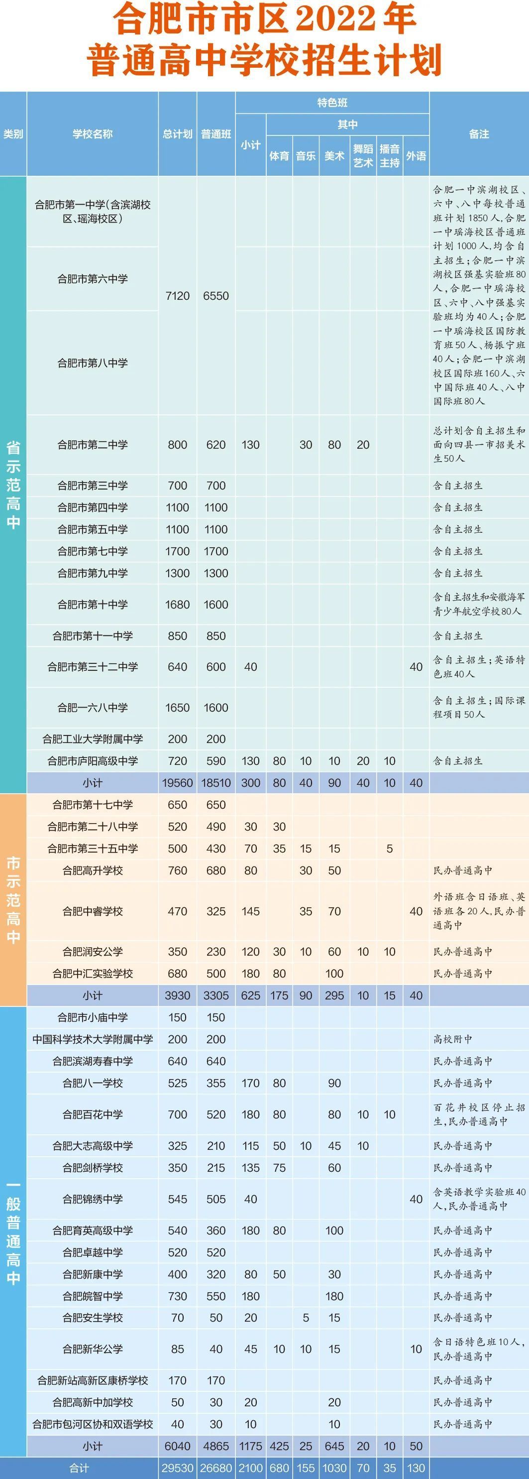 2022-06-18 09:14:22閱讀()合肥市教育局據(jù)合肥市教育局發(fā)布消息,6月17日,2022年合肥市區(qū)省示范高中指標(biāo)到校生計(jì)劃公布。