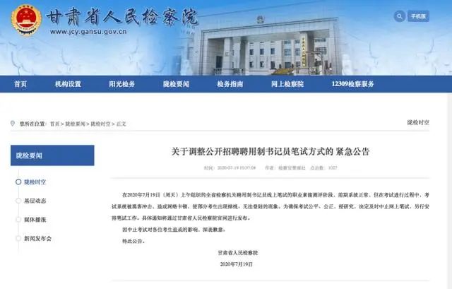 甘肅檢察機(jī)關(guān)書記員線上筆試中止