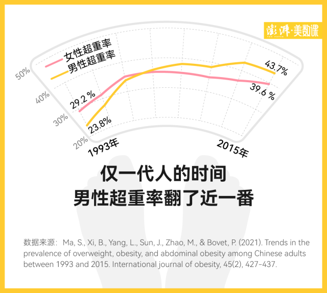 到了本世紀(jì),國內(nèi)男性超重的比例開始迅速增加,并最終反超。