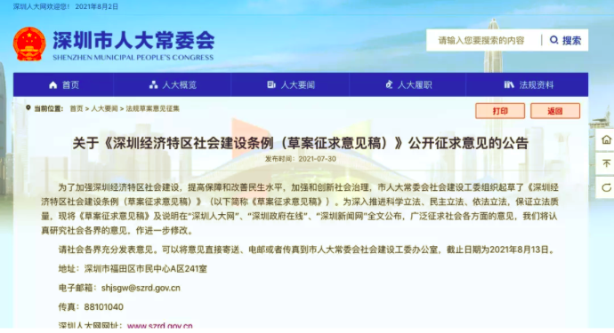 近日,深圳市人大常委會社會建設(shè)工委組織起草了《深圳經(jīng)濟(jì)特區(qū)社會建設(shè)條例(草案征求意見稿)》(以下簡稱為《草案》),共五章七十三條細(xì)則, ...