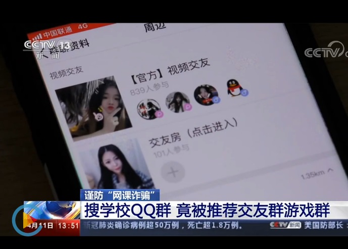 央視曝光QQ搜索“網(wǎng)課”匹配視頻交友直播