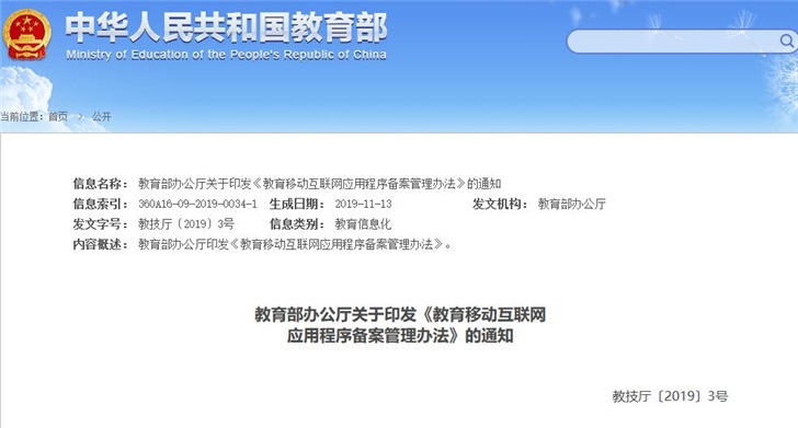 近日,教育部辦公廳印發(fā)《教育移動(dòng)互聯(lián)網(wǎng)應(yīng)用程序備案管理辦法》的通知,通知要求各單位于2019年12月1日至2020年1月31日前完成對(duì)現(xiàn)有教育移 ...