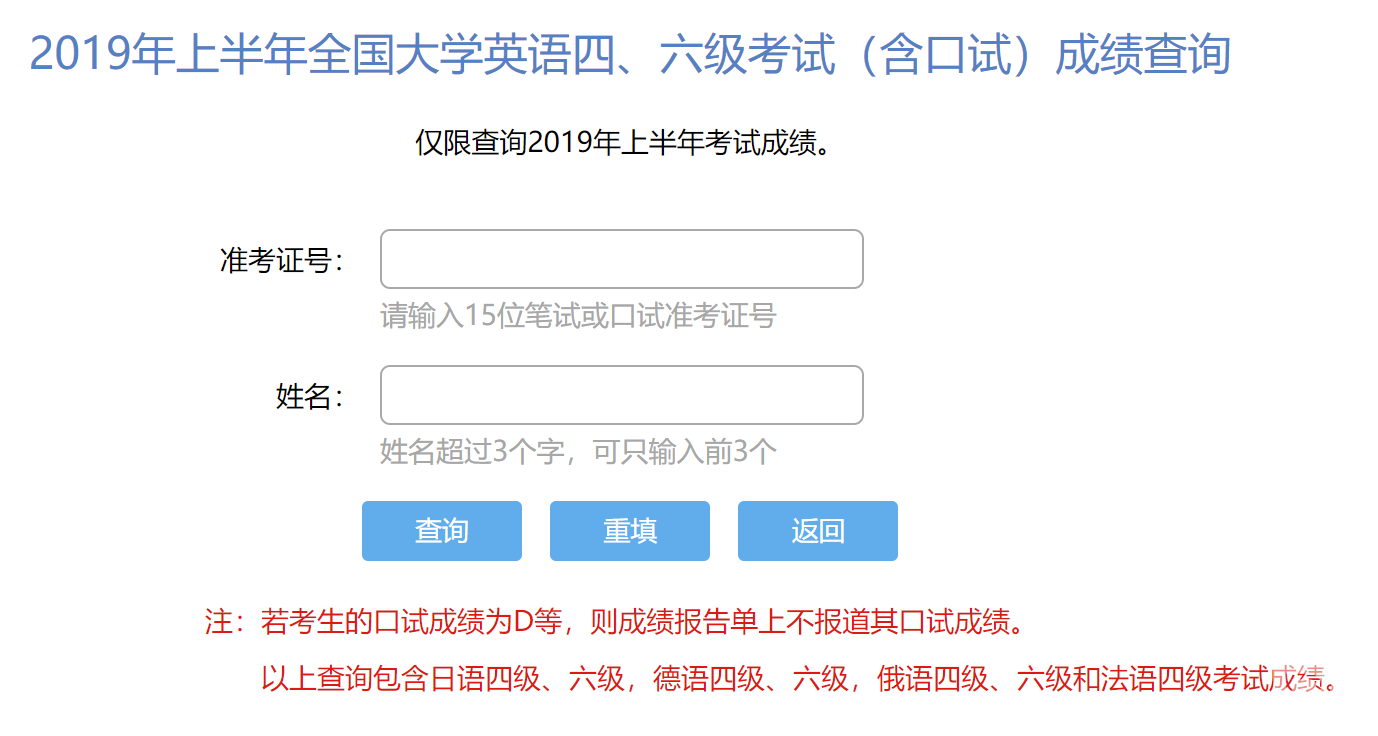 2019年上半年全國大學(xué)英語四、六級考試成績查詢