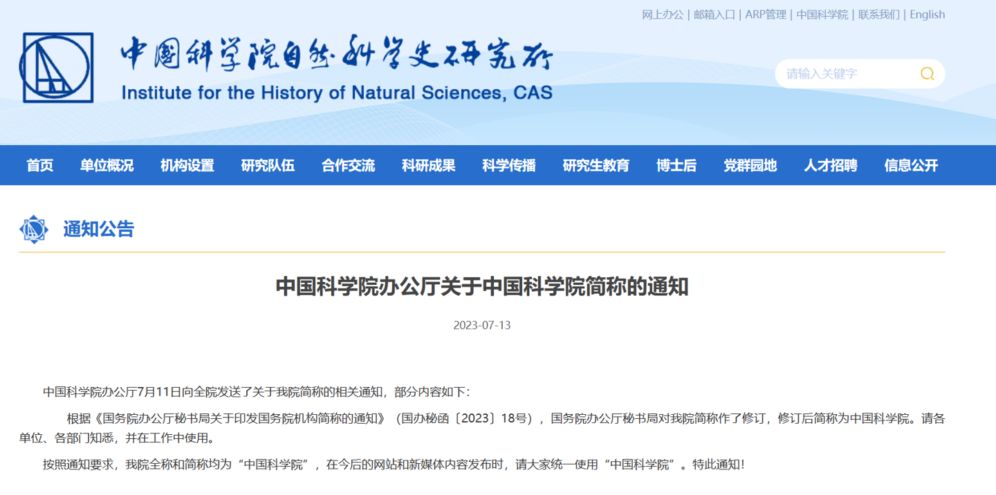 不叫“中科院” 官方簡稱修訂為“中國科學(xué)院”