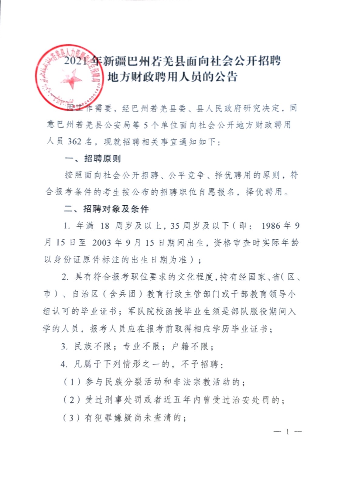 2021年巴州若羌縣面向社會公開招聘地方財政聘用人員公告