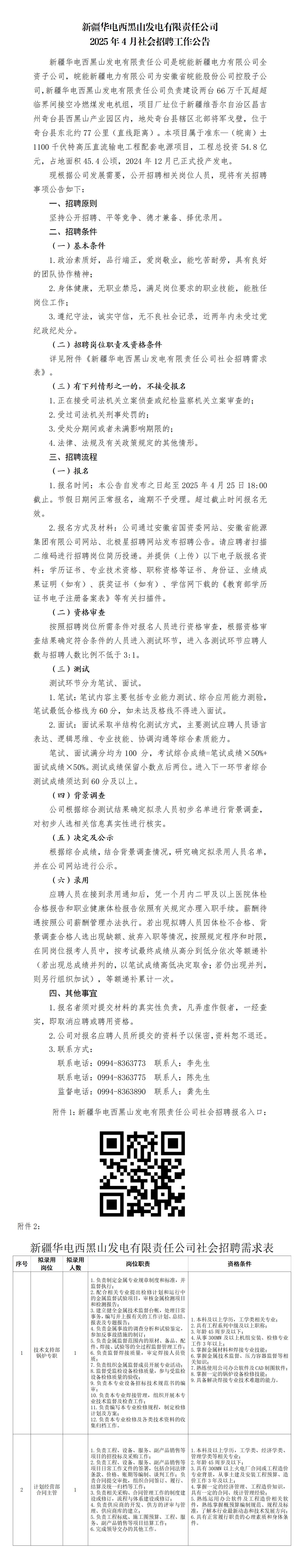 2025年新疆華電西黑山發(fā)電有限責(zé)任公司社會(huì)招聘工作公告