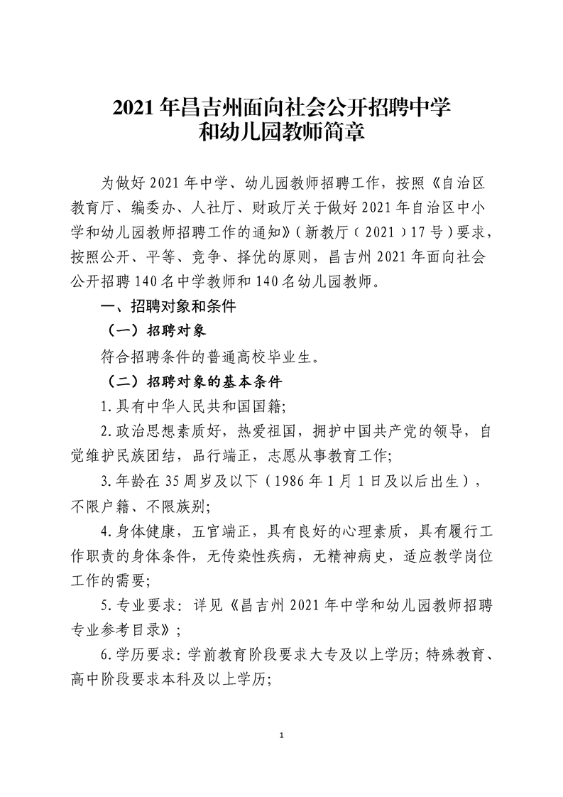 2021年昌吉州面向社會(huì)公開(kāi)招聘中小學(xué)和幼兒園教師簡(jiǎn)章