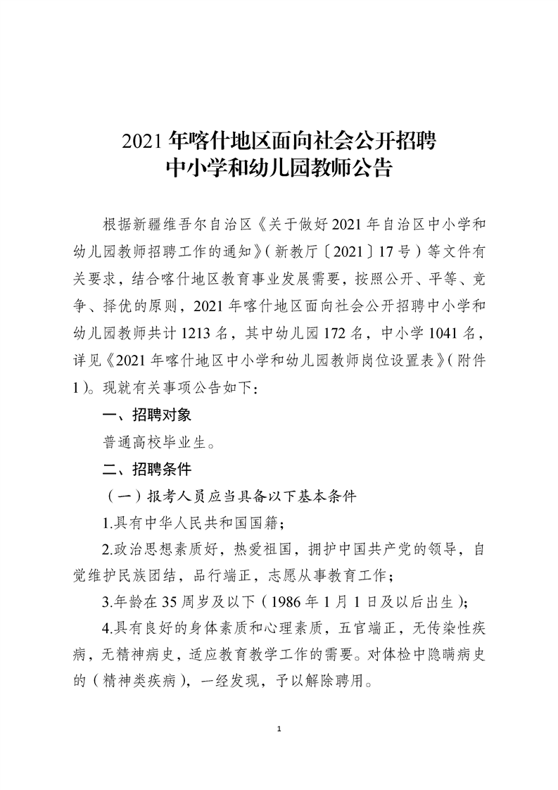 2021年喀什地區(qū)面向社會(huì)公開(kāi)招聘中小學(xué)和幼兒園教師公告