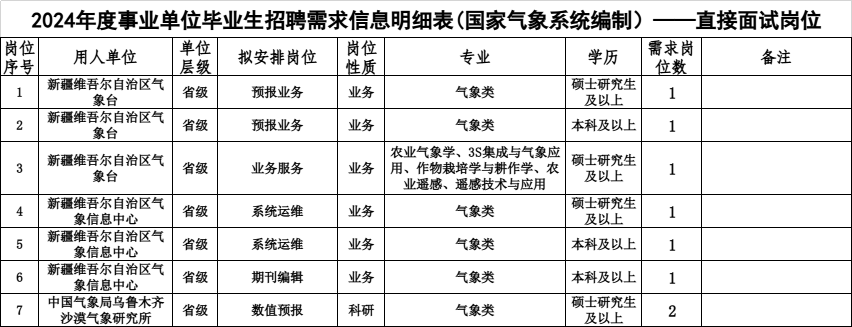 2024年新疆維吾爾自治區(qū)氣象局事業(yè)單位公開(kāi)招聘應(yīng)屆畢業(yè)生公告(第二批)
