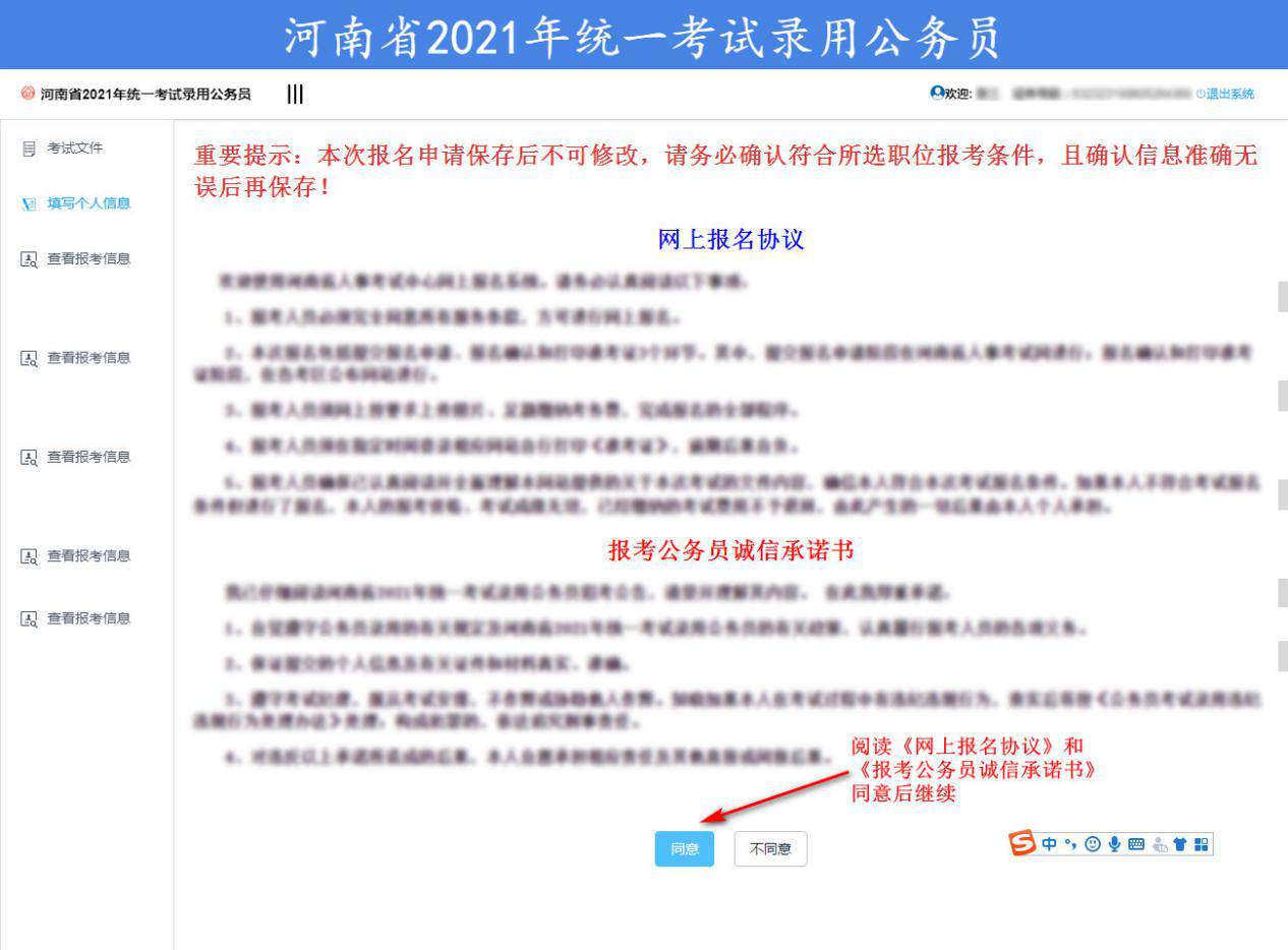 (一)認(rèn)真閱讀《網(wǎng)上報(bào)名協(xié)議》和《報(bào)考公務(wù)員誠(chéng)信承諾書》,同意后繼續(xù)。