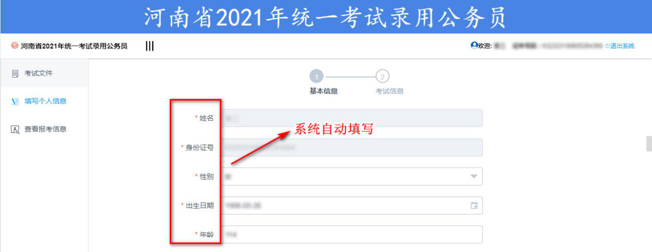 1.姓名、身份證號(hào)、性別、出生日期、年齡等信息為系統(tǒng)自動(dòng)填寫。