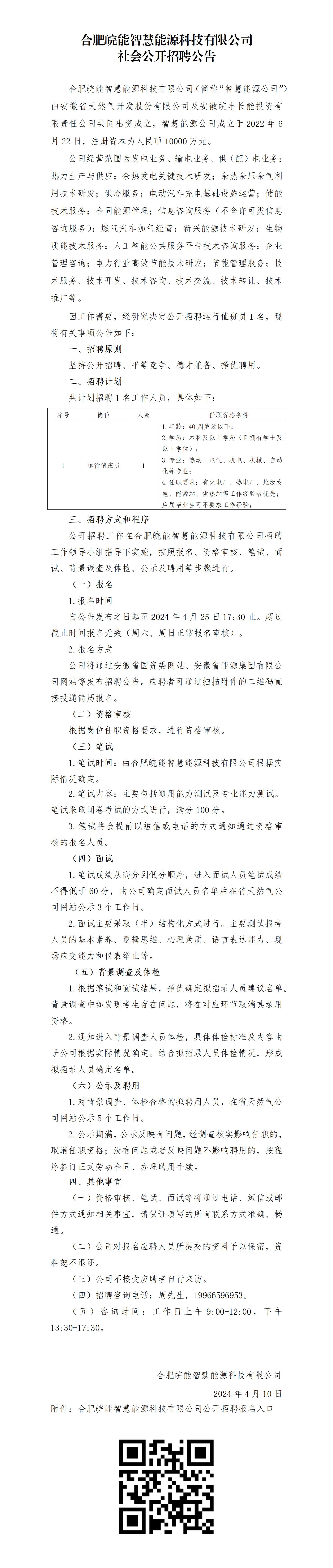 2024年合肥皖能智慧能源科技有限公司社會公開招聘公告