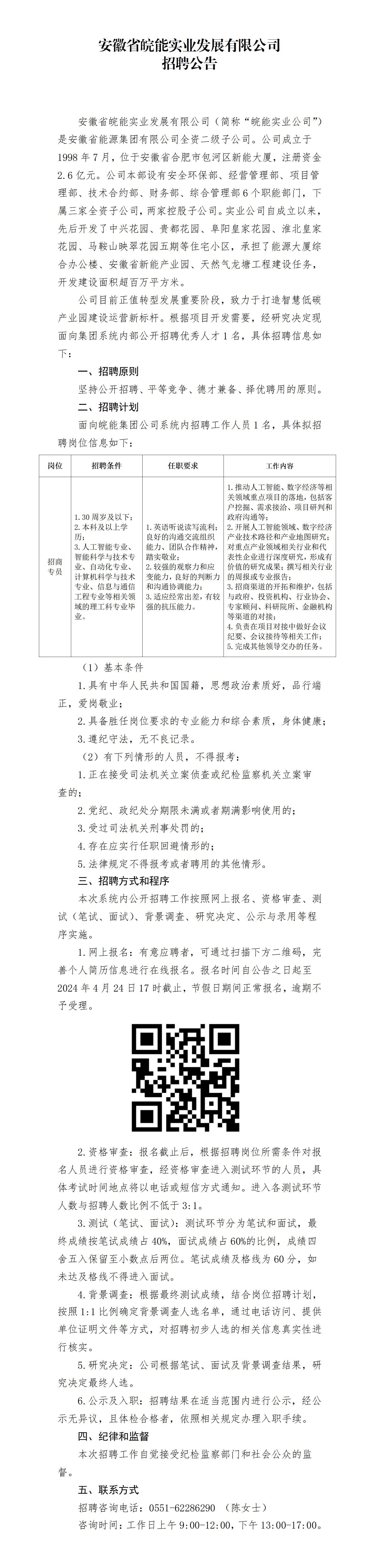 面向皖能集團(tuán)公司系統(tǒng)內(nèi)招聘工作人員1名,具體擬招聘崗位信息如下: