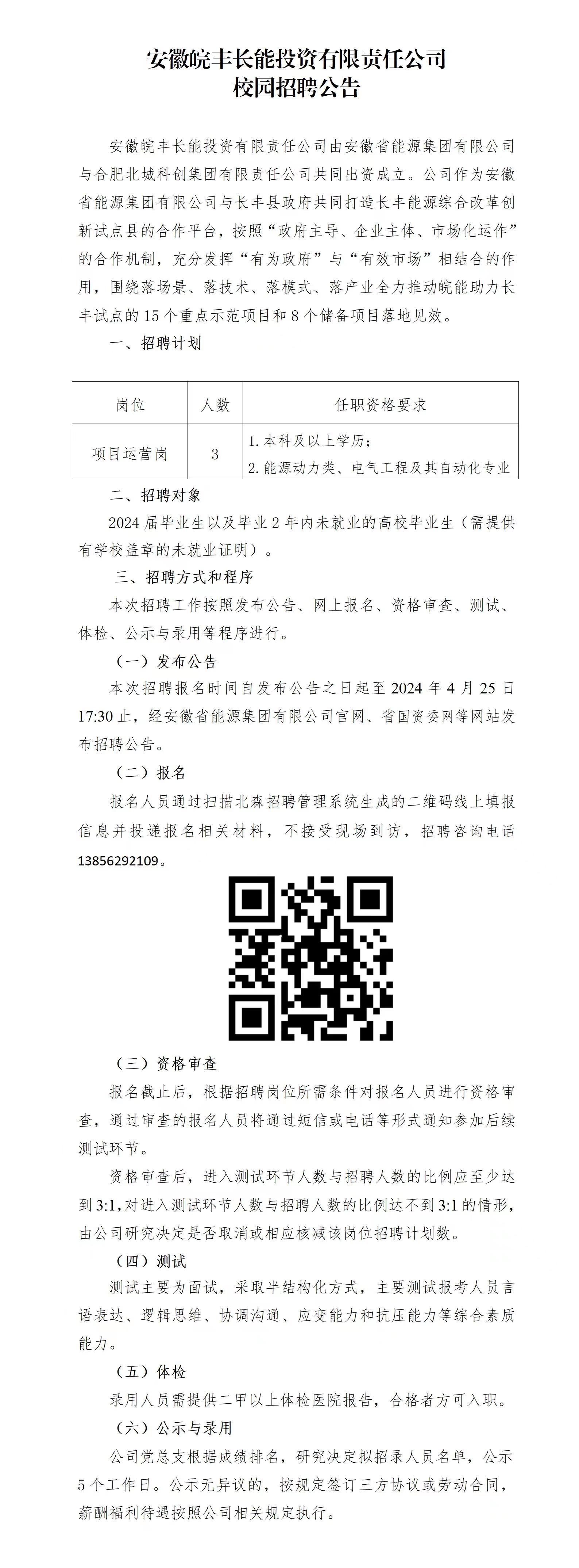 2024年安徽皖豐長能投資有限責(zé)任公司校園招聘公告