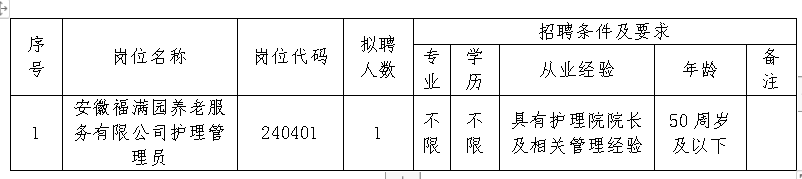 2024-05-13 11:31:42閱讀()安徽省盛岳保安服務(wù)集團(tuán)有限公司安徽省岳順人力資源服務(wù)有限公司是岳西縣縣屬一級(jí)國(guó)有企業(yè)盛岳集團(tuán)旗下的全資子公司。我公司充分了解客戶的行業(yè)特點(diǎn)、組織架構(gòu)、人才需求、員工培訓(xùn)等方面的需求,致力于為客戶提供定制化的人力資源服務(wù)方案,包括人才招聘、員工培訓(xùn)、勞務(wù)派遣、勞務(wù)外包等,旨在幫助客戶解決人力資源問(wèn)題,提高組織效率,降低運(yùn)營(yíng)成本。盛岳·安徽福滿園養(yǎng)老服務(wù)有限公司委托我公司面向社會(huì)公開招聘工作人員,現(xiàn)將相關(guān)事項(xiàng)公告如下: