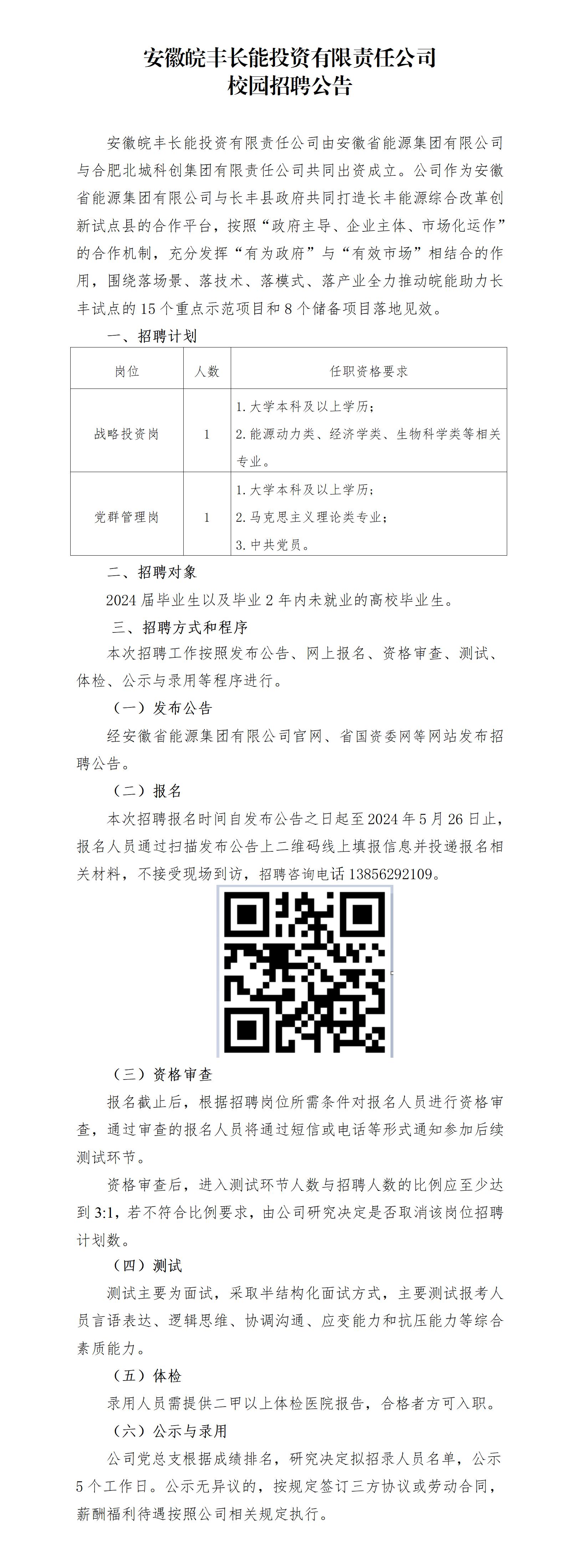 2024年安徽皖豐長能投資有限責任公司校園招聘公告