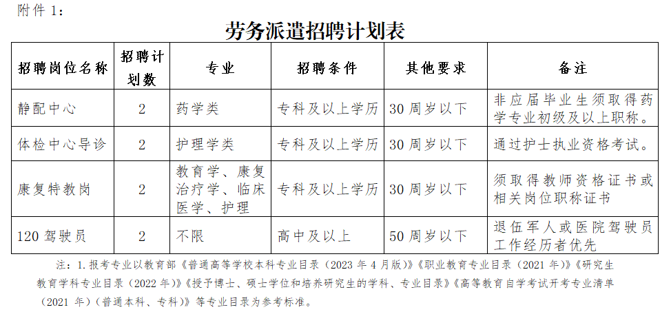 具體招聘崗位及人數(shù)詳見附件1:勞務(wù)派遣招聘計劃表