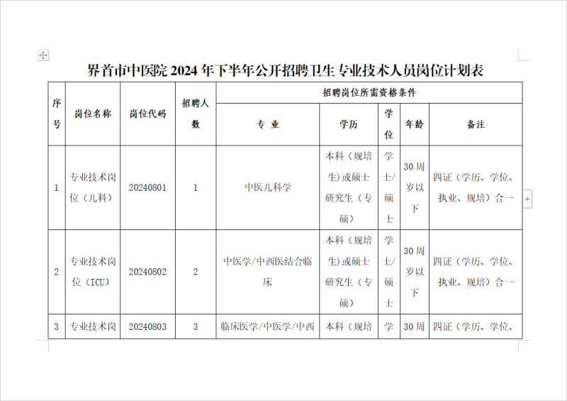 2024年下半年界首市中醫(yī)院公開招聘衛(wèi)生專業(yè)技術(shù)人員30名(具體崗位見附件)。