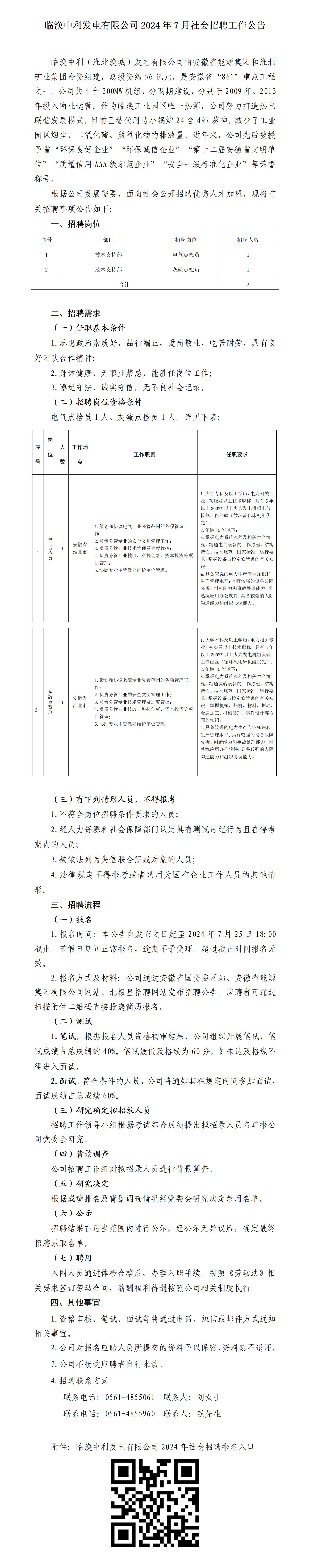 2024年淮北臨渙中利發(fā)電有限公司社會招聘工作公告