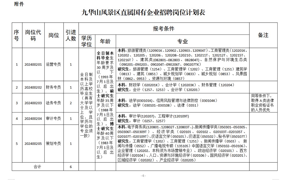 本次計(jì)劃招聘專業(yè)人員6名。具體崗位、報(bào)考條件等詳見《招聘崗位計(jì)劃表》(見附件)。