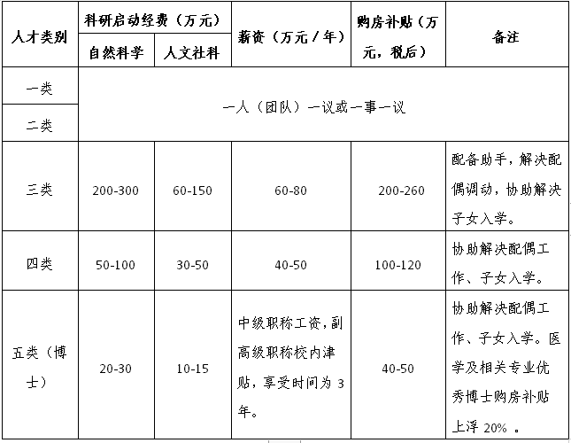 1.對于全職引進(jìn)的博士及以上高層次人才,入周轉(zhuǎn)池編制,按照《皖南醫(yī)學(xué)院引進(jìn)高層次人才實(shí)施辦法(修訂)》(校政[2018]191號)(http://rsc.wnmc.edu.cn/63/10/c1981a90896/page.htm)提供購房補(bǔ)貼、安家費(fèi)、科研啟動(dòng)經(jīng)費(fèi)等。標(biāo)準(zhǔn)如下: