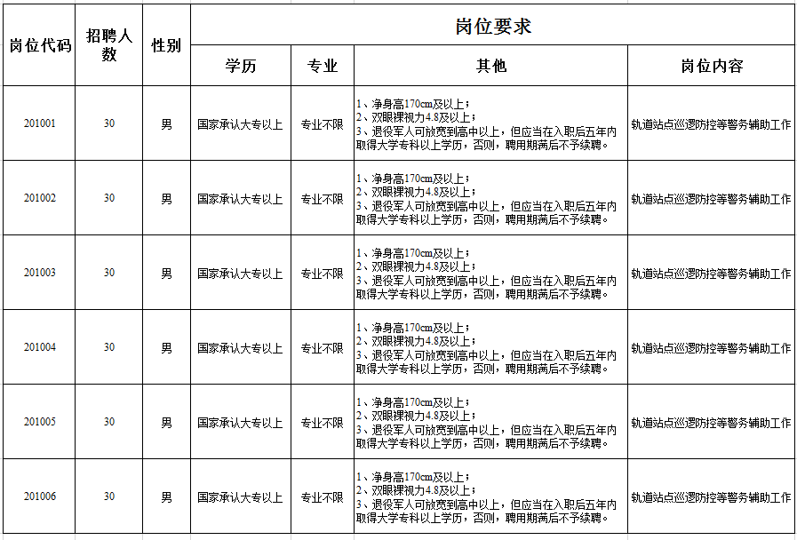 4.雙眼裸視力達到4.8及以上,五官、體型端正、具有正常履行職責的身體條件,無明顯生理缺陷及特征、傳染性疾病、殘疾、口吃、重聽、色盲(弱)、紋身;