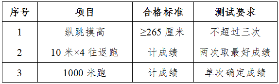 (四)體能測評參照《關于印發(fā)公安機關錄用人民警察體能測評項目和標準》(人社部發(fā)〔2011〕48號)、《公安機關人民警察體育鍛煉達標標準》等文件規(guī)定執(zhí)行。