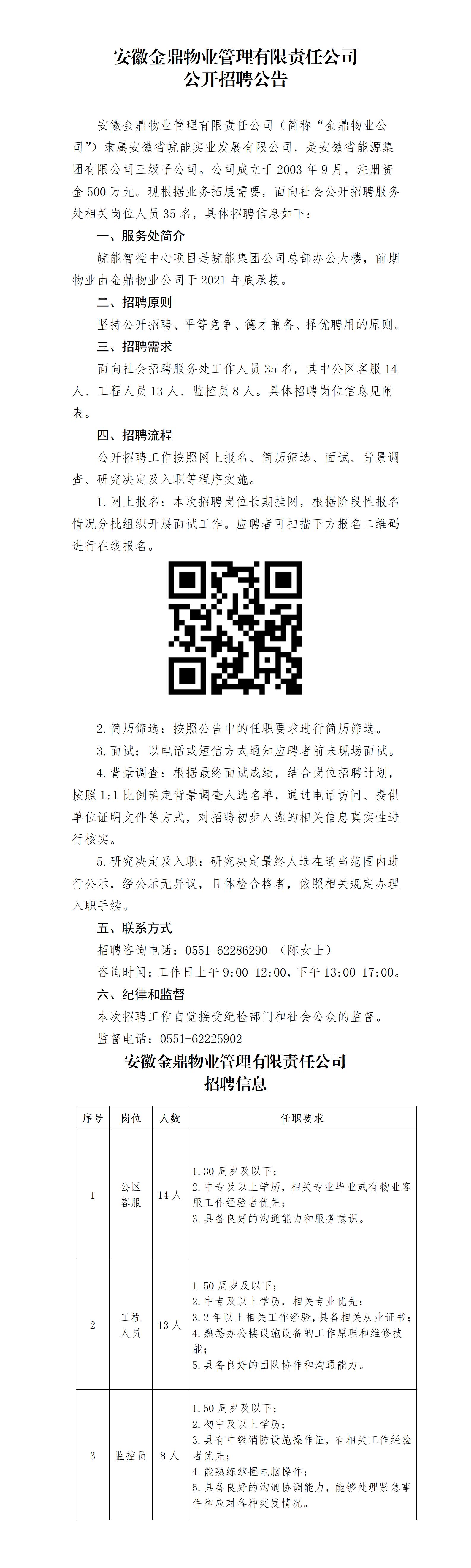 2024年安徽金鼎物業(yè)管理有限責(zé)任公司公開(kāi)招聘公告