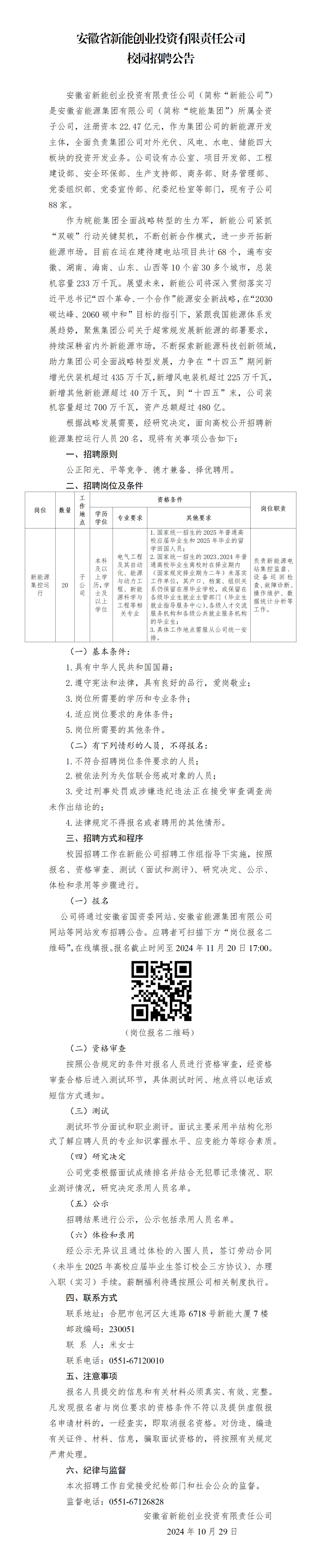 2024年安徽省新能創(chuàng)業(yè)投資有限責(zé)任公司校園招聘公告