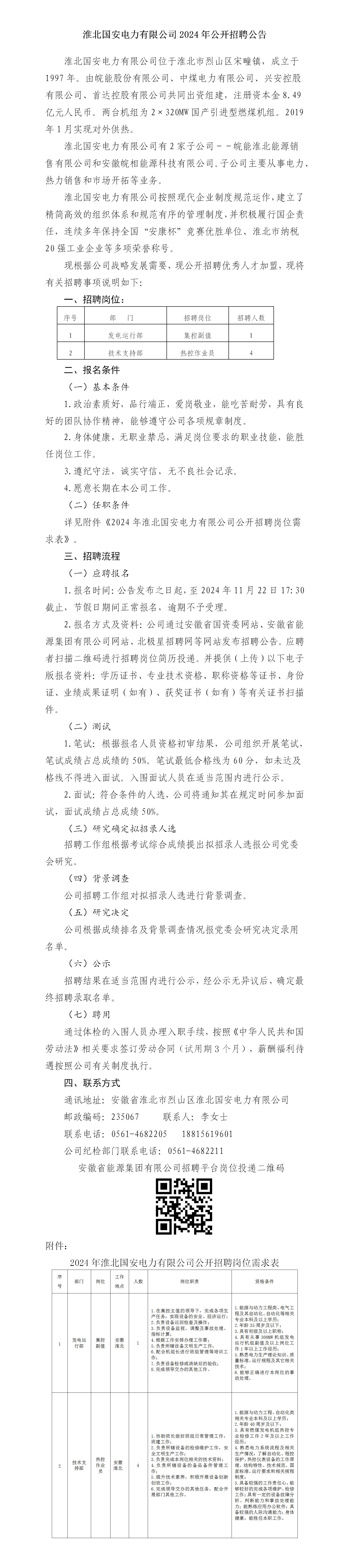 2024年淮北國(guó)安電力有限公司公開招聘公告