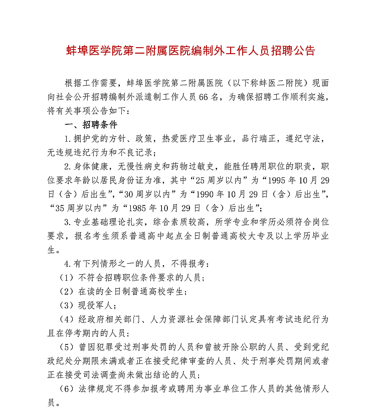 2020年蚌埠醫(yī)學院第二附屬醫(yī)院編制外工作人員招聘公告