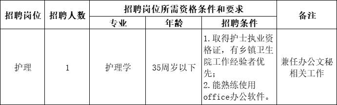 因工作需要,休寧縣萬安鎮(zhèn)衛(wèi)生院經(jīng)研究決定通過黃山市仁和人力資源服務有限公司面向社會公開招聘護理人員1名,現(xiàn)將有關事項公告如下: