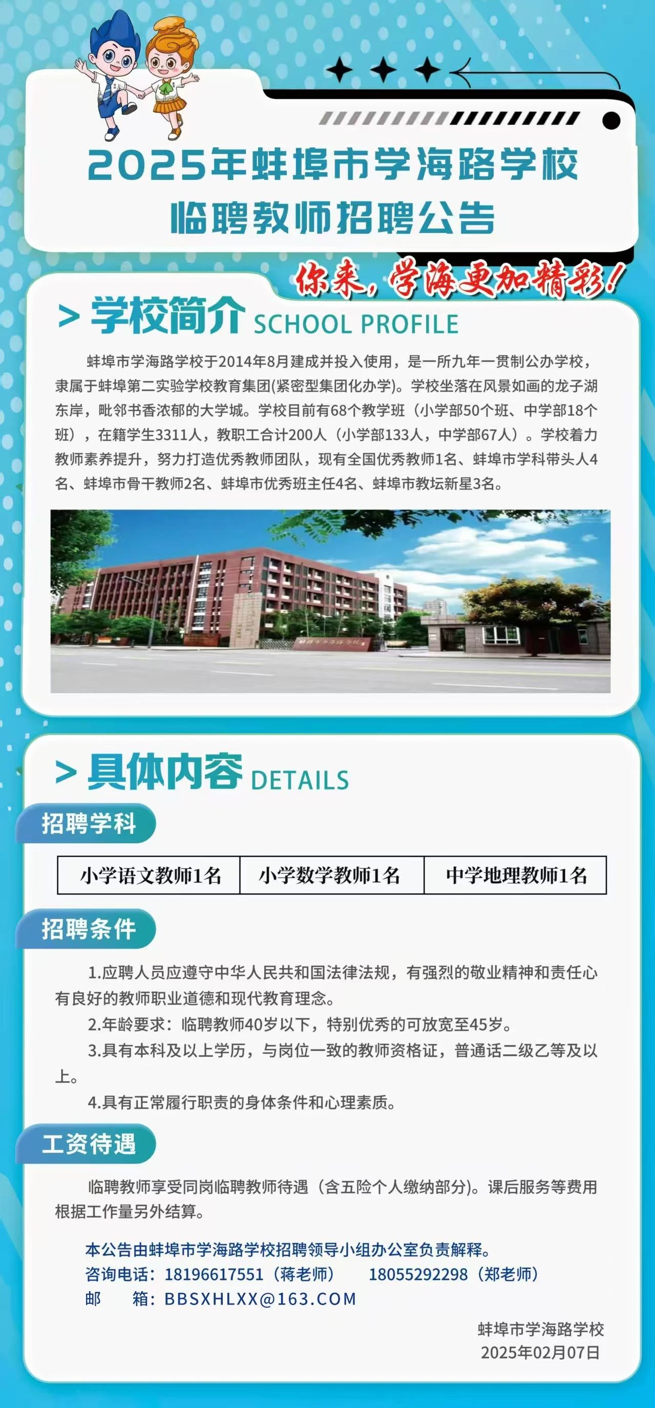 2025年蚌埠市學海路學校臨聘教師招聘公告